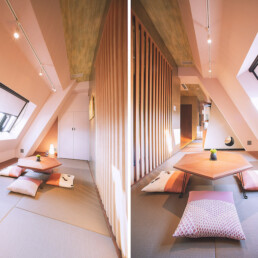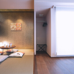 - 伝統的な旅館の風格をモダンデザインに仕上げた畳敷きの小上がり